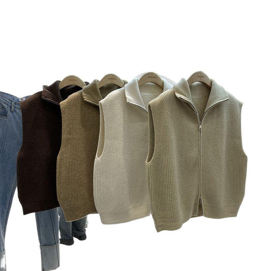Casual Solid-Color Loose-Fit Zippered Knitted Vest For Layering